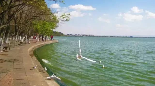 昆明市是灵秀而迷人的,它三面环山,南濒滇池,湖光山色,天然成趣。滇池是云南省最大的高原湖泊,全国第六大淡水湖泊,沿湖两岸风光绮丽。由于地处低纬高原而形成“四季如春”的气候,特别是有高原湖泊滇池在调节着温湿度,使这里空气清新、天高云淡、阳光明媚、鲜花常开。